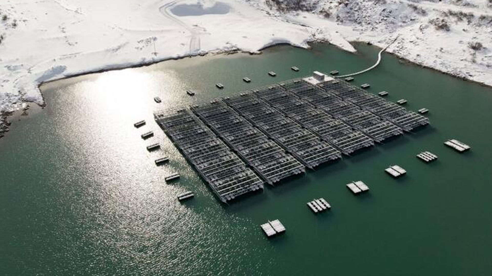 Dünyanın ilk yüksek rakımlı yüzer güneş enerjisi santrali İsviçre Alpleri'nde gölün üzerinde ...
